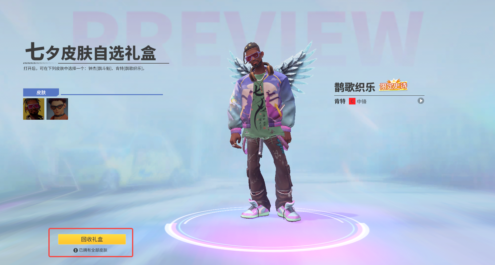已拥有礼盒中2款皮肤的玩家,未使用的礼盒可选择回收为8000金币。