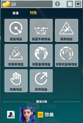 自定义比赛观战新增提供增益效果的观战道具(包括投篮、抢断、晃倒等),消耗【金豆】给支持的选手加buff,收礼方还可获得金豆分成;