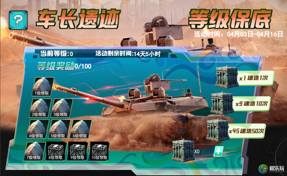 《车长遗迹 等级保底》活动全新一期将于4月3日~4月16日开启!