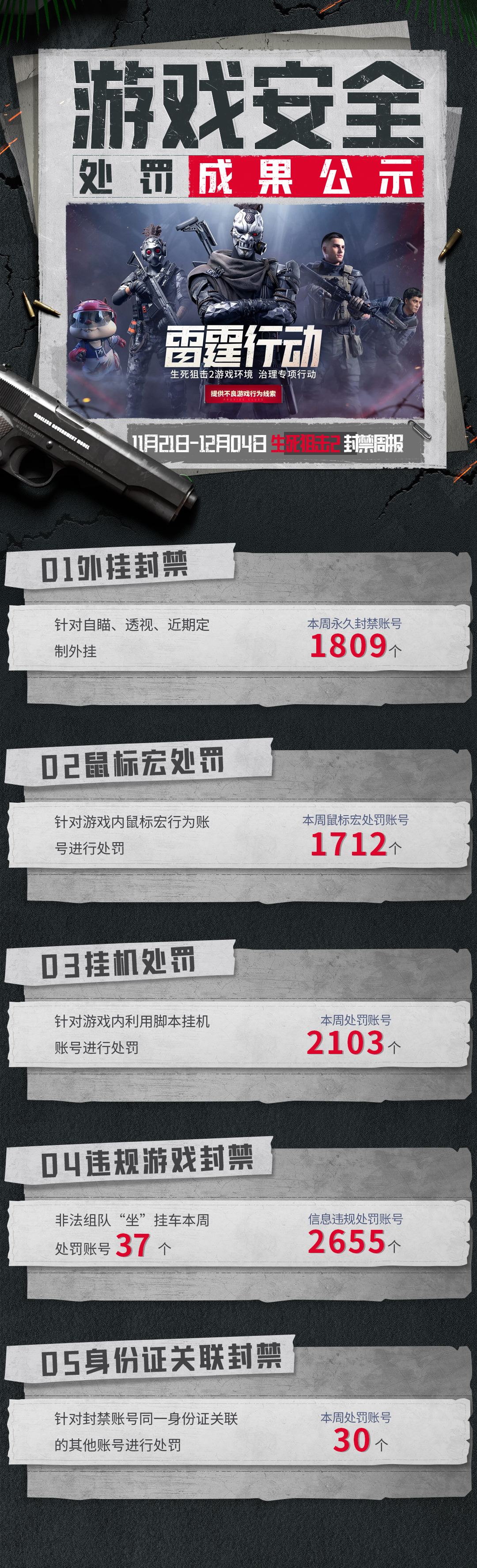 当前位置: 生死狙击2 > 新闻中心> 【公告】(11月21日-12月04日)游戏环境安全处罚公示